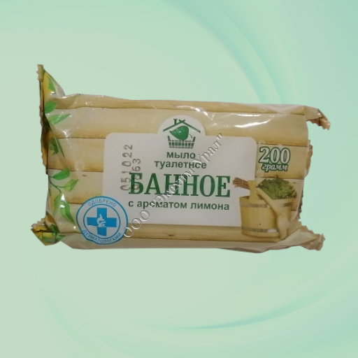 Мыло туалетное "Банное с ароматом лимона", 200 г в обертке, Меридиан.