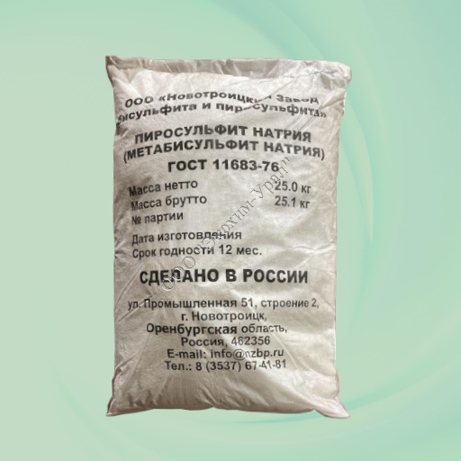 Метабисульфит натрия (пиросульфит натрия, дисульфит натрия, натрий сернистокислый пиро, sodium metabisulfite) – кристаллический порошок белого или светло-жёлтого цвета со слабым запахом сернистого газа, с химической формулой Na2S2O5. Широко известен как пищевая добавка E223, используется как консервант, антиоксидант и стабилизатор. Благодаря своим химическим свойствам, продукт незаменим для ряда промышленных процессов и эффективно решает задачи продления срока хранения, защиты от окисления и микробиологической чистоты продукции.