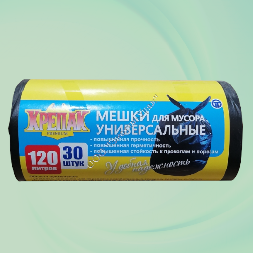 Главная / Каталог / Хозяйственные товары / Пакеты, мешки / Пакеты д/мусора ПНД Крепак (в рулоне, 15 мкм) 120 л, 10 (30) шт в комплекте